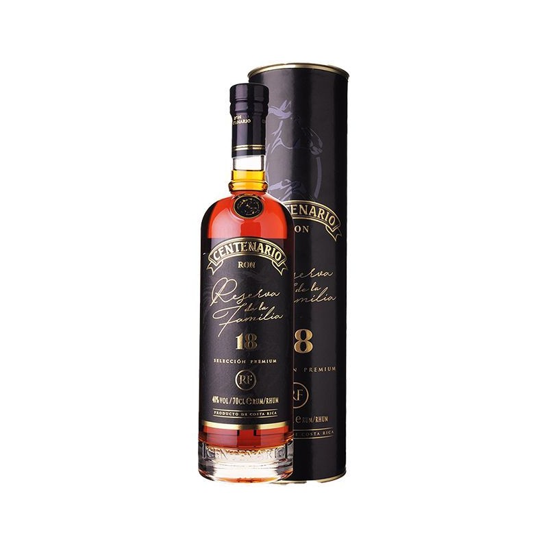 Rum Centenario 18 anni Reserva de la Familia è un rum premium costaricano ottenuto da una selezione di rum invecchiati con Metodo Solera, che combina distillati giovani e rum maturati fino a 18 anni